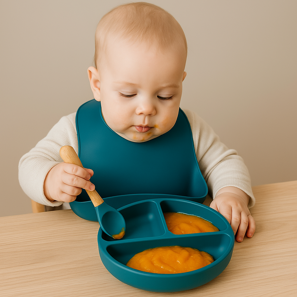 Perfeito para bebês e crianças pequenas que estão começando a explorar alimentos sólidos e necessitam de utensílios especialmente desenvolvidos para suas habilidades motoras. Os Talheres de Silicone Infantil Para Introdução Alimentar são macios ao toque, fáceis de segurar e livres de BPA, proporcionando uma experiência alimentar segura e confortável. O babador ajuda a manter a roupa limpa, enquanto o prato e os talheres são projetados para facilitar o aprendizado da alimentação independente.